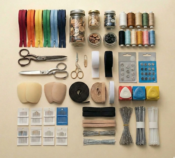 Herramientas y materiales esenciales para crear y finalizar tus proyectos textiles.